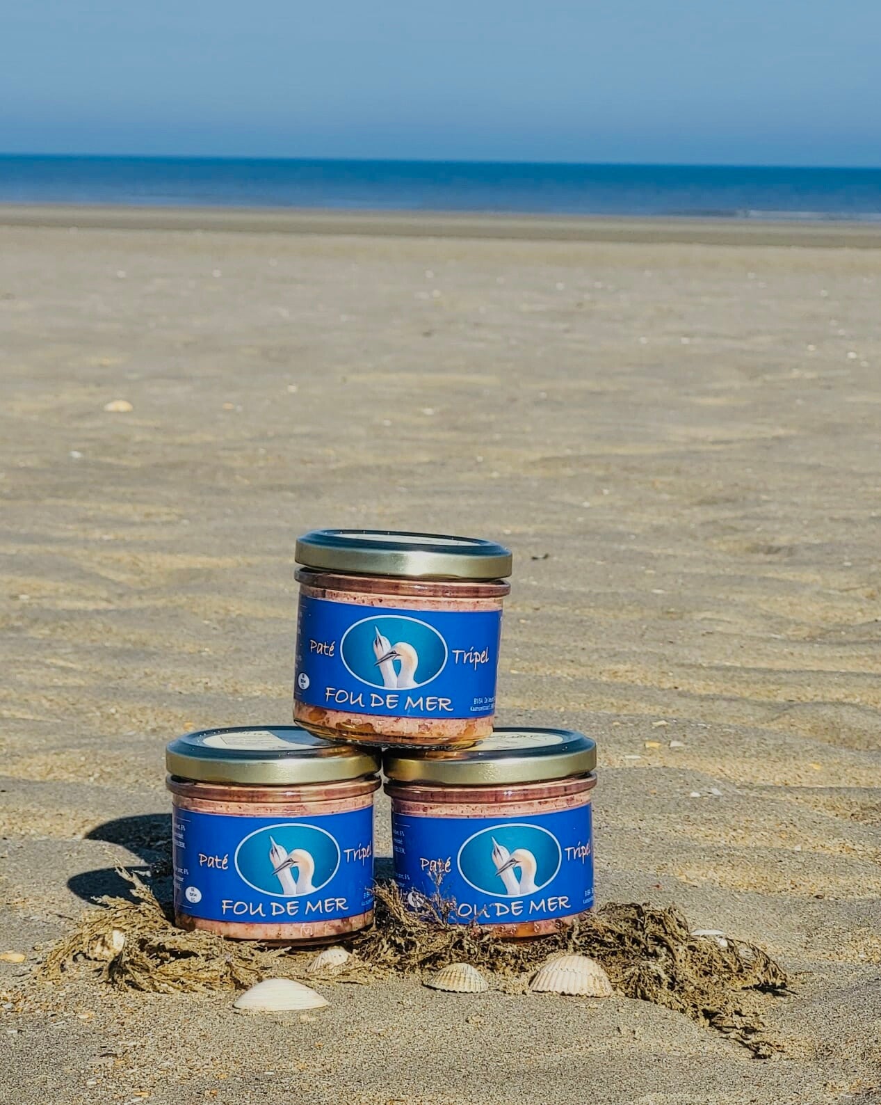 Deze ambachtelijke paté is een smaakvolle specialiteit uit Alveringem (Veurne), gemaakt met het karaktervolle bier Fou de Mer. De unieke combinatie van fijn gemalen vlees en het fris, licht kruidige bier resulteert in een smeuïge paté met een subtiele, verfijnde smaaktoets. Bereid in kleine oplages door Potje Paté, een producent die bekendstaat om zijn traditionele recepten en lokale ingrediënten. Heerlijk op een stuk vers brood of als verfijnde aperitiefhap.